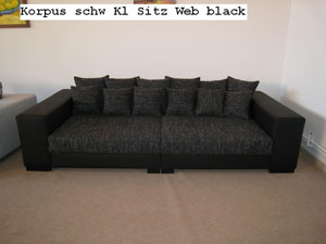| Riesiges Big Sofa mit Hocker und Kissen komplett auch in Cordstoff Federkern und Komfortschaum, aufwendige Steppnähte, Maße 300cm x140cm +Hocker 120x120cm Preis ab Lager Löhne komplett nur 599,-€ bei Selbstabholung Bezug Korpus Bezug Cord schwarz | |