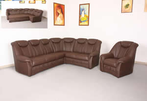 | Hochwertige Rundeckgarnitur, Wohnlandschaft in schwarz , Echtlederoptik, hervorragende Qualität, super Sitzkomfort, dank Federkern und Nosagfederung. Mit ausziehbarem Bett!! Hochlehnergarnitur der Spitzenklasse!!! Auf Wunsch können wir Ihnen dieses Modell auch in anderen Stoffen und Farben bauen, dauert ca. 8 Wochen und kostet dann 799,-€ Die Maße sind 265cm x220cm, Rückenhöhe 95cm.Oder als 3-E-3-1 für 849,-€ erhältlich Sessel extra 120,-€ Preis ab Lager Löhne 3-E-2 komplett mit Sessel 699-€ bei Selbstabholung | |